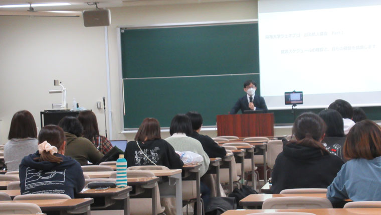 11月10日(木)において、株式会社ソーシャルデザイニング研究所の櫻井照士氏を講師に迎え、「出る杭・ジェネプロ」履修者を対象とした就職活動支援プログラムが開催されました。
